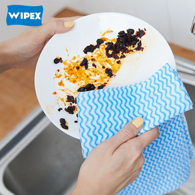 Wipex Heavy Duty Wipes are premium antibacterial household non-woven wipes designed for versatile cleaning tasks. Each sheet measures 500mm x 300mm, offering ample coverage for various surfaces. These durable, disposable dish cloths are perforated for easy use and come in a roll of 85 sheets. Featuring a leaf pattern and color-coded design, they are both functional and visually distinctive. Ideal for quick and efficient cleaning, these wipes provide a hygienic solution for everyday needs. Perfect for home and commercial use, they combine practicality with reliability.